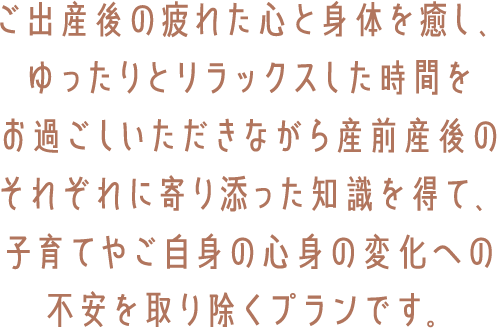出産直後で湯船に浸かれないお身体をやさしく温めます。冷え解消にも!